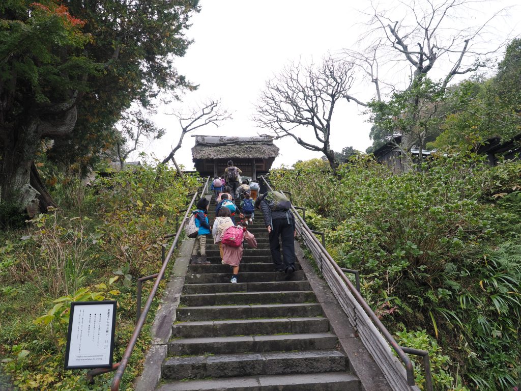山門をくぐるとき、素読でやっている「山門をぎいと鎖すや秋の暮れ」という正岡子規の句を思い出してくれた子もいました。