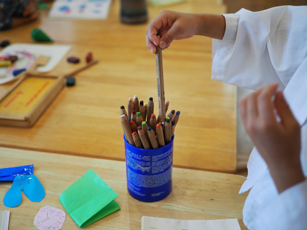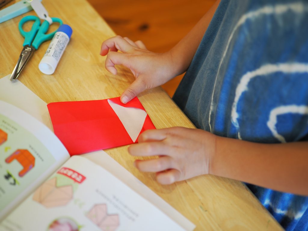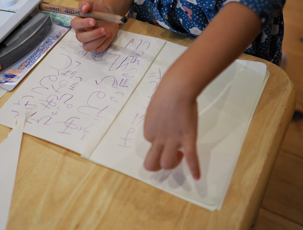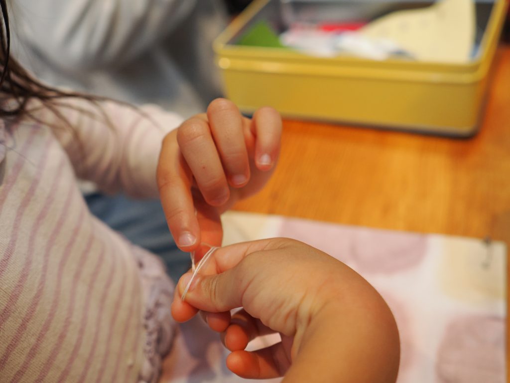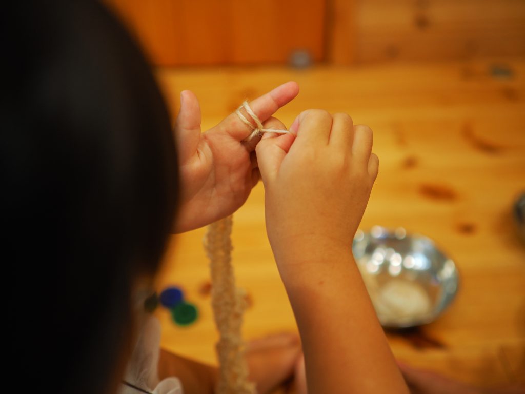 「ののはな」の室内活動では、子どもたちが「手仕事」に集中することがあります。 針で縫う、手で編む、紙を折ることはもちろん、字を書くことの中にも子どもたちは手仕事のたのしみを見つけています。 「手のチカラ」を徐々に発揮させることのうれしさ、たのしさ、むずかしさを感じているのだと思います。 秋という季節は、こんなふうに気持ちを集中させることに向いている気がします。