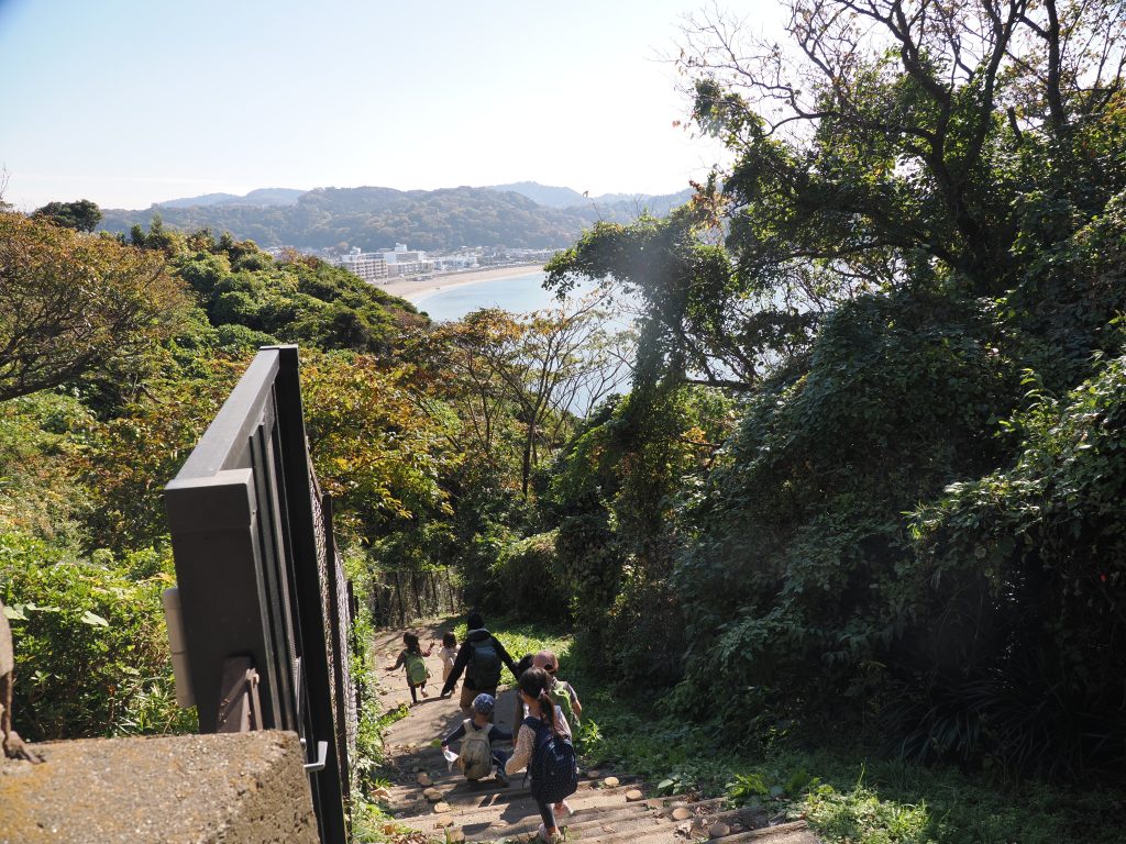 披露山公園から逗子海岸に降りました。 あたたかな陽気にさそわれて海岸でしばらく遊んだあと、浪子園地に移動し、浪子不動でお弁当をいただきました。 小さな滝があって、風情のある場所です♪ 披露山公園ではお猿さんに挨拶して、遊具で遊んでから帰りました。