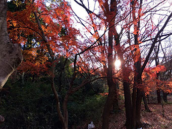 <秋> 朝日を浴びる紅葉
