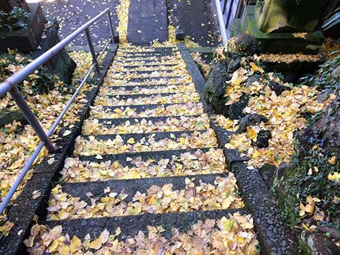 <秋> 三嶋神社の階段も落ち葉でいっぱい!