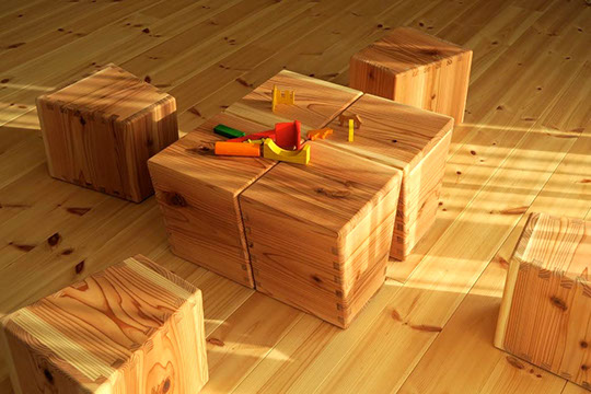 6つ合わせてちょっと広い「机」にしてみました